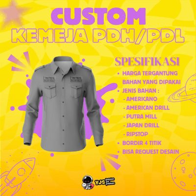 Tingkatkan citra profesional organisasi Anda dengan layanan pembuatan kemeja custom PDH dan PDL kami. Kami memahami bahwa setiap profesi memiliki kebutuhan unik, oleh karena itu kami menawarkan solusi pakaian yang dirancang khusus untuk mendukung mobilitas tinggi sekaligus menjaga penampilan tetap rapi dan berwibawa.